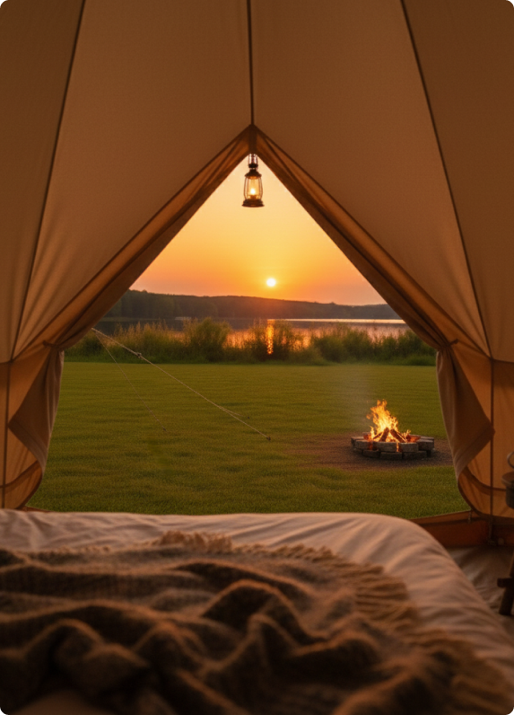 Nasz camping jest prosty i wygodny. Namioty są przygotowane przed Twoim przyjazdem, więc nie tracisz czasu na rozkładanie i pakowanie. Śpisz w łóżku z pościelą, jesteś blisko jeziora, lasu i natury, a jednocześnie masz porządek, spokój i jasne zasady pobytu.